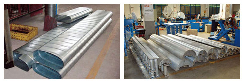 橢圓風(fēng)管機(jī)能夠?qū)⑵交痛植诘穆菪龍A管制成平直和橢圓的管子。PLC電腦控制,并且LCD操作面板儲(chǔ)存了產(chǎn)品參數(shù)以便在實(shí)際必要操作過程中能簡單的回憶起來。